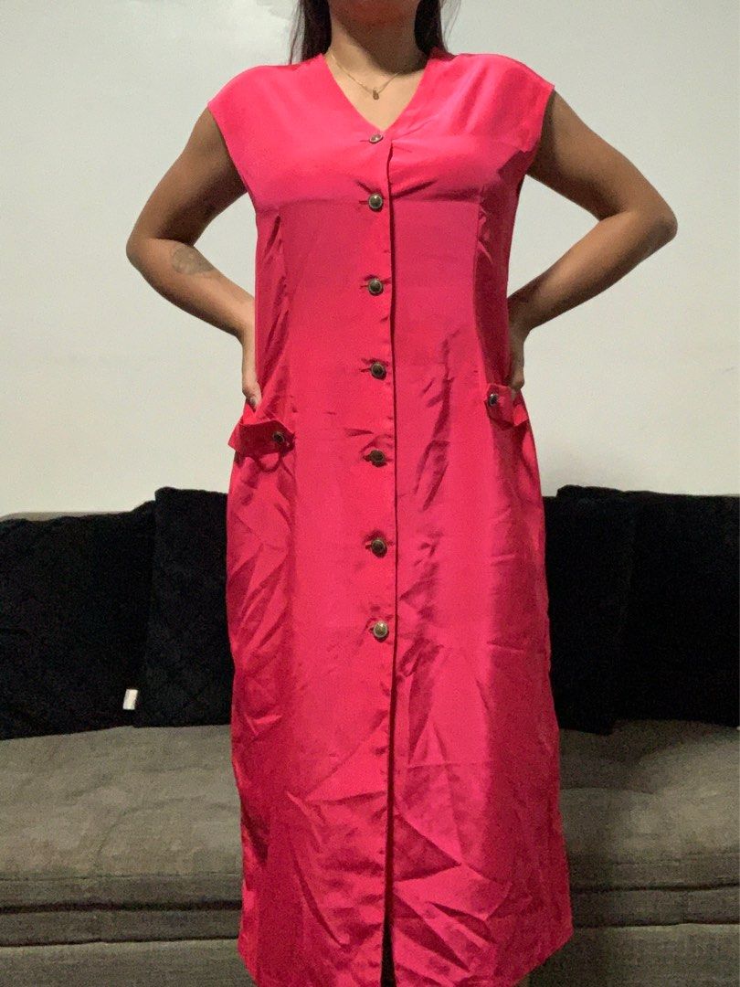 Hot Pink Button Down Maxi Sleeveless Boxy Dress Women S Fashion Dresses Sets Dresses On Carousell