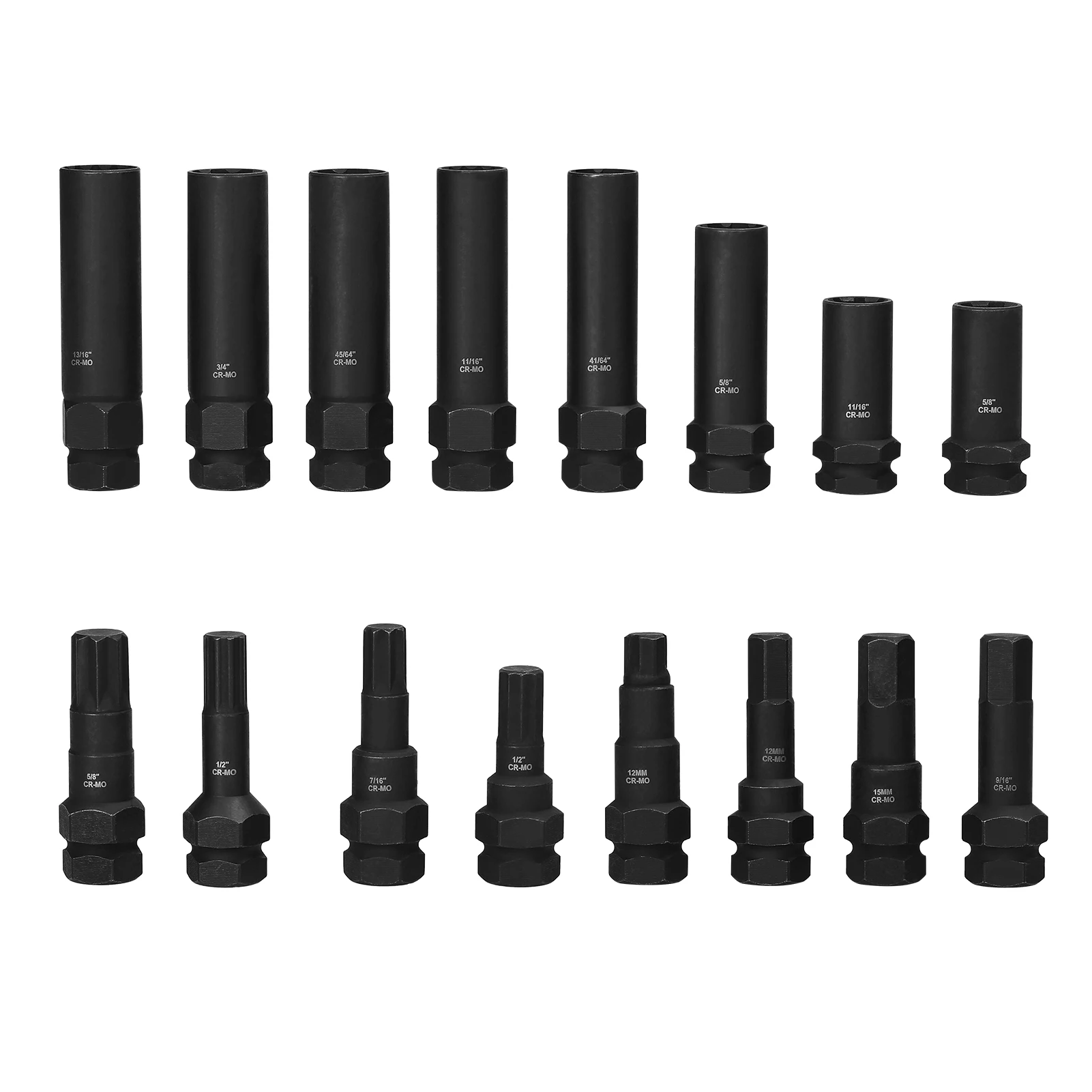 16pc Locking Wheel Lug Nut Remover Worn Studs 1 2 Dr Socket Spline Star Hex Lug